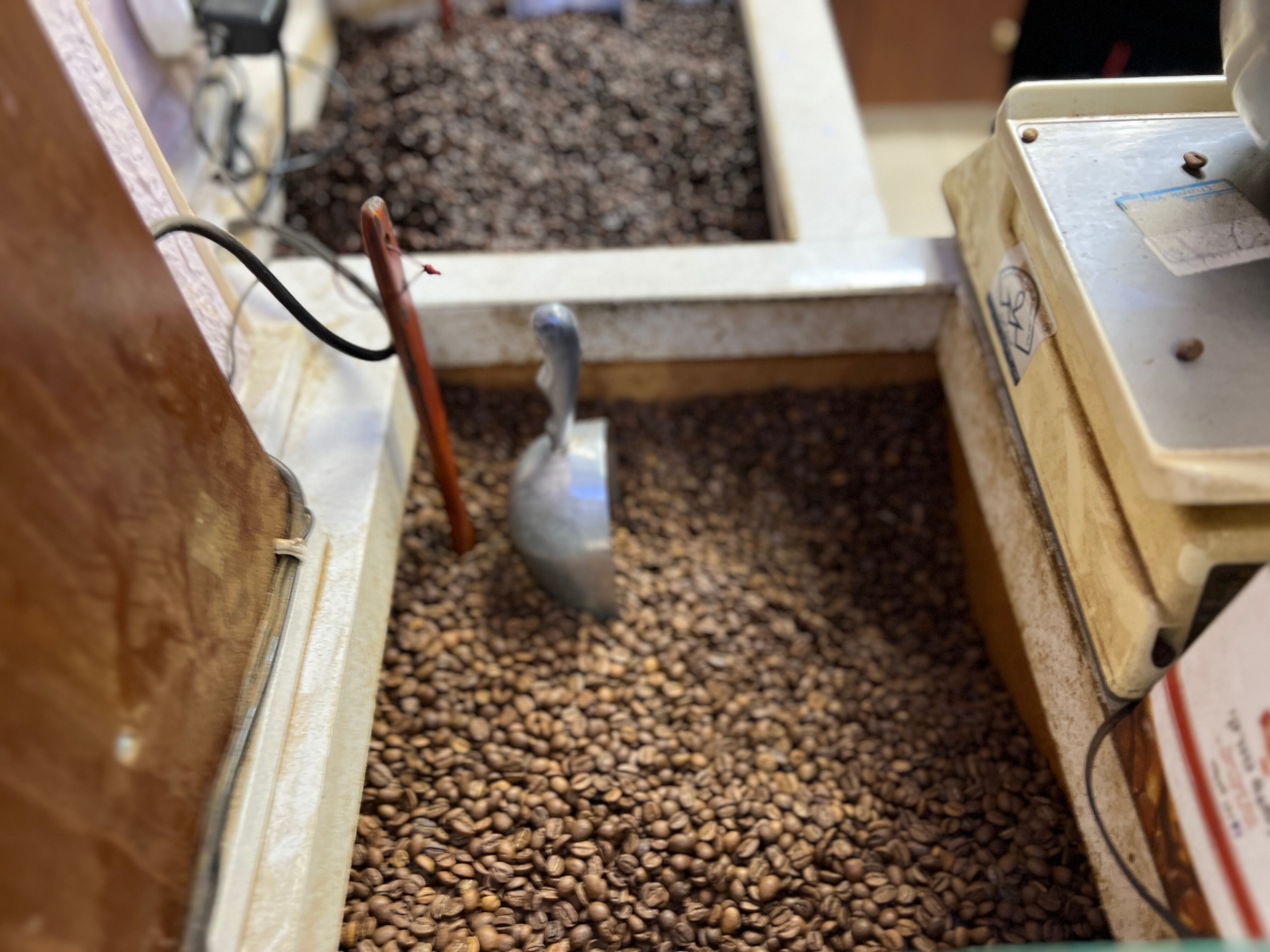 アルバイク・カフェは、焙煎した豆の量り売りと、その場で淹れた本格的なトルココーヒーが楽しめる人気店。